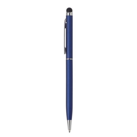 Penna a sfera in alluminio capacitiva (compatibile su schermi touch), gommino in tinta, meccanismo a rotazione, refill blu