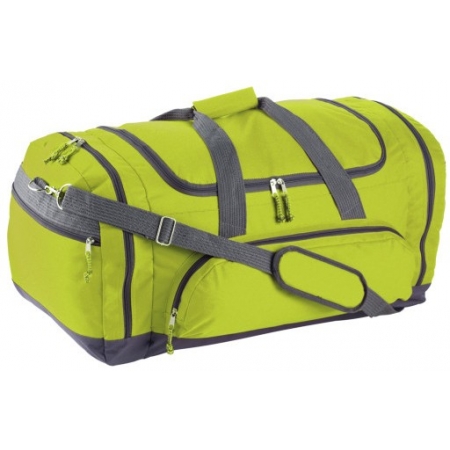 Sacca sport. Borsone sportivo con tracolla e varie tasche laterali. colori vivaci e cuciture a contrasto . Poliestere 600D